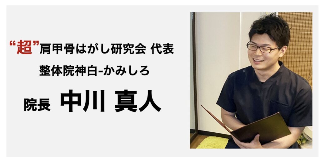 中橋先生とは同じ大阪の同業として出会い、今では肩甲骨はがし研究会を一緒に立ち上げ、技術部長として日々新しいテクニックを生み出してくれています。