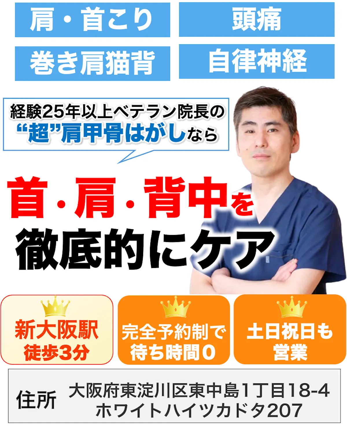 肩首の症状に特化した当院の”超”肩甲骨はがしメソッドも自分の技術と組みあさせて昇華しており、必ずお力になれると思います。